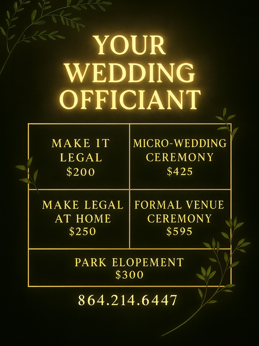 Congratulations on your upcoming marriage! Choosing the right officiant to guide you through your vows is a significant part of your wedding journey. Here’s a detailed breakdown of the available packages to help you select the perfect fit for your special day: